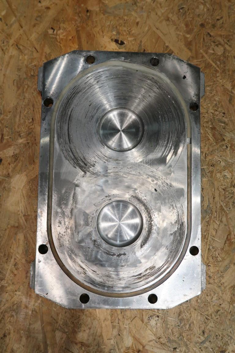 Lobe pump with tri stainless steel lobbes. Diameter lobbes: 180 mm. Displacement per revolution: ± 0,8 ltr. Current drive work: motor: 11 kW - 22 A - n1: 1440 rpm, n2: 315 rpm. Mounted on SS feet plate. Connections: DN100/DN100.