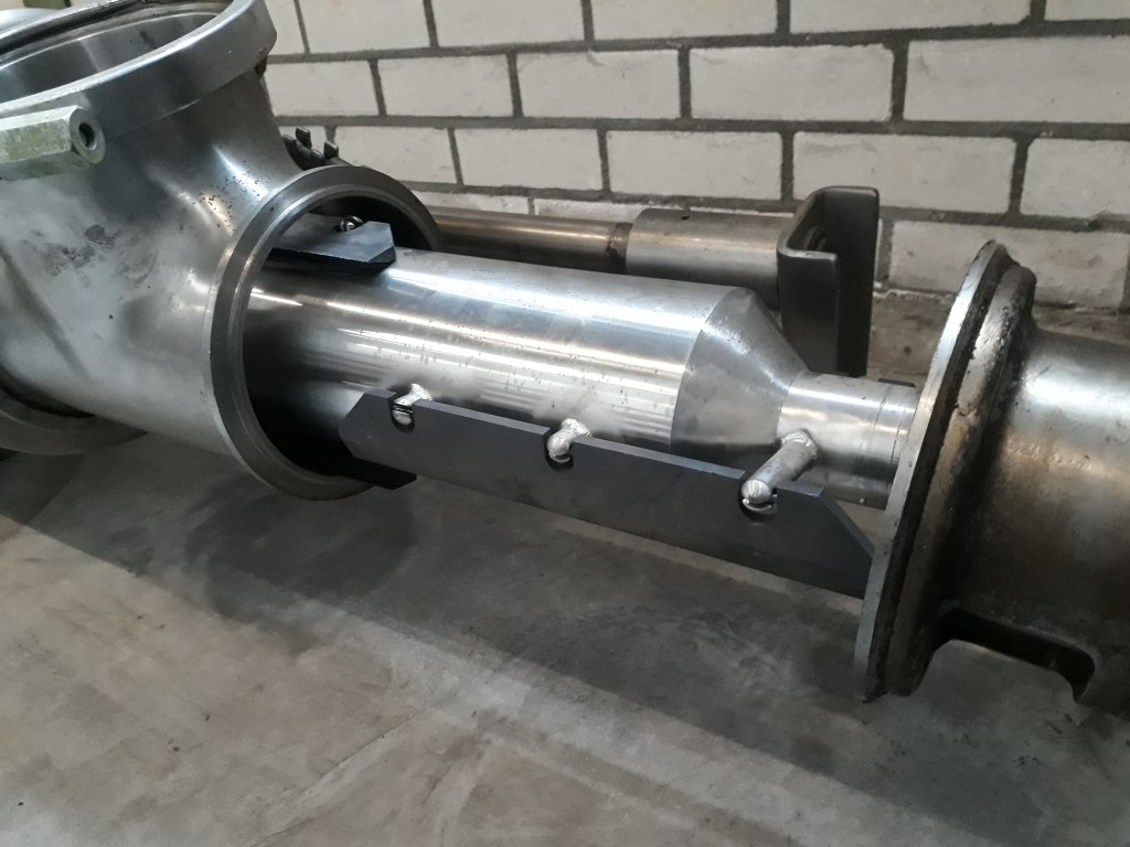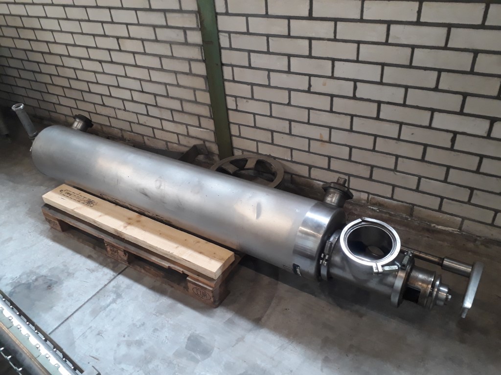 1x Scraped surface heatexchanger, dismanteled, excluding hydroset lift construction, drive motor or frame. including Rotor and plastic scraper blades, cast product heads and Nickel plated cylinder. (Suitable for heating and cooling in non corrosive enviroments),
