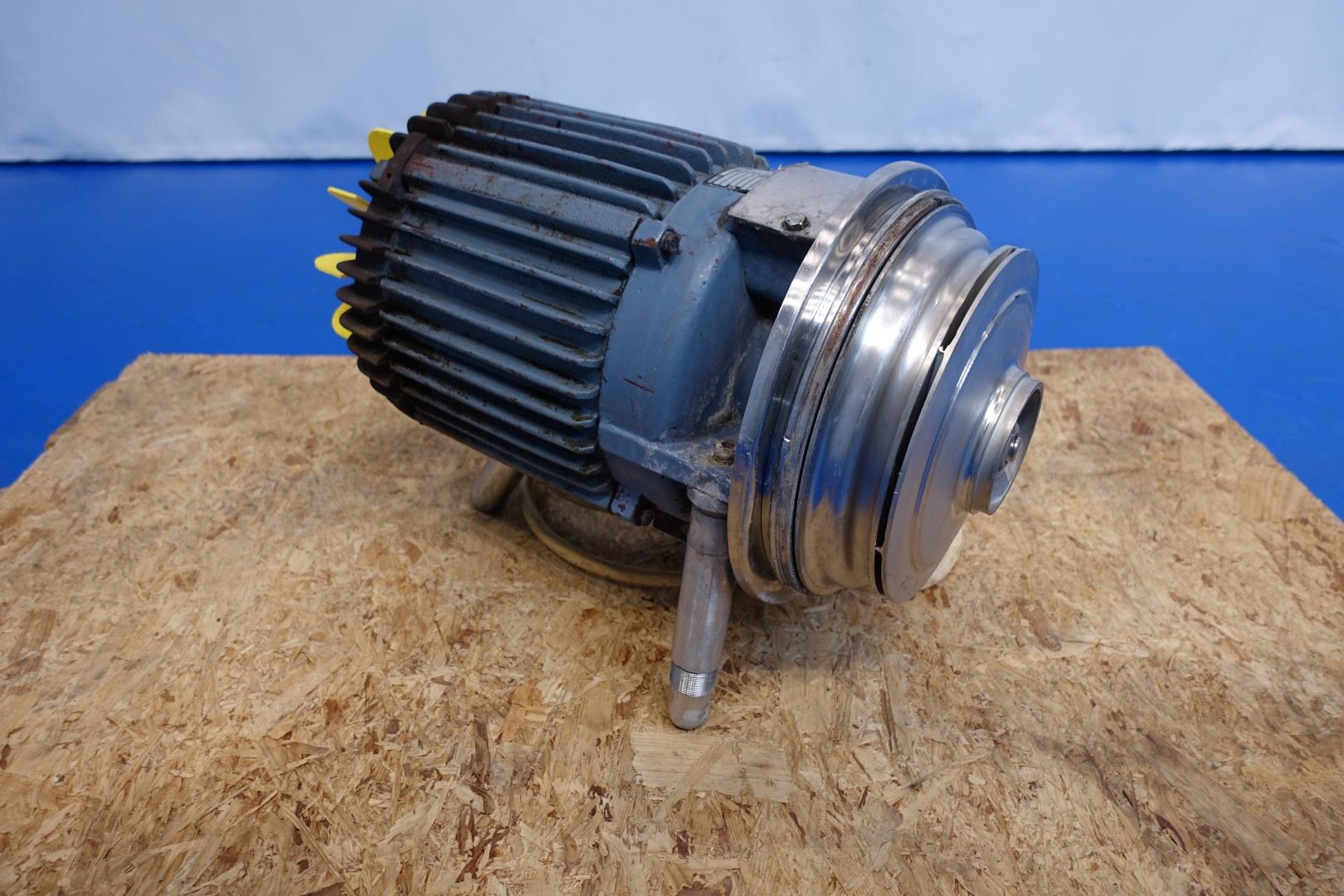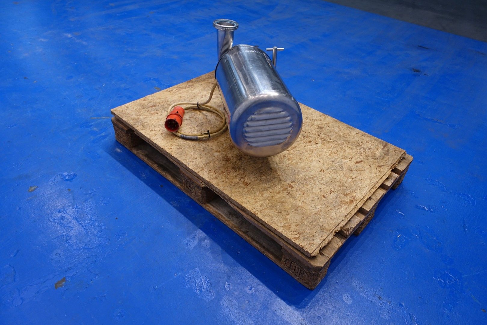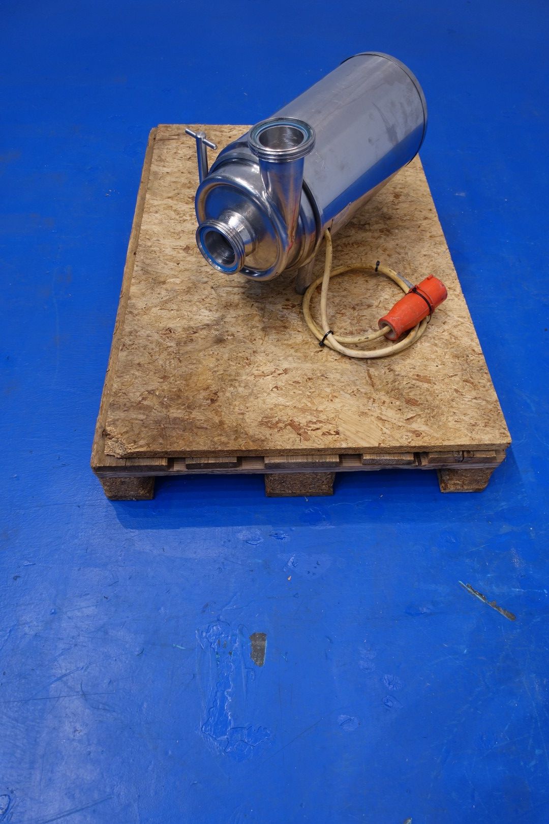 Sanitary centrifugal pump. Current motor: 7,5 kW - 15 A - 2.900 rpm - 50 Hz. Impellor diameter: 210 mm. Connections: (In) 3" Din / (Out) 3" Din. Total dimensions: 62x27x42 (lxwxh) cm - weight: 112 kg.