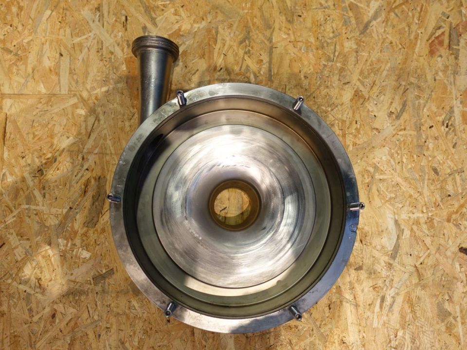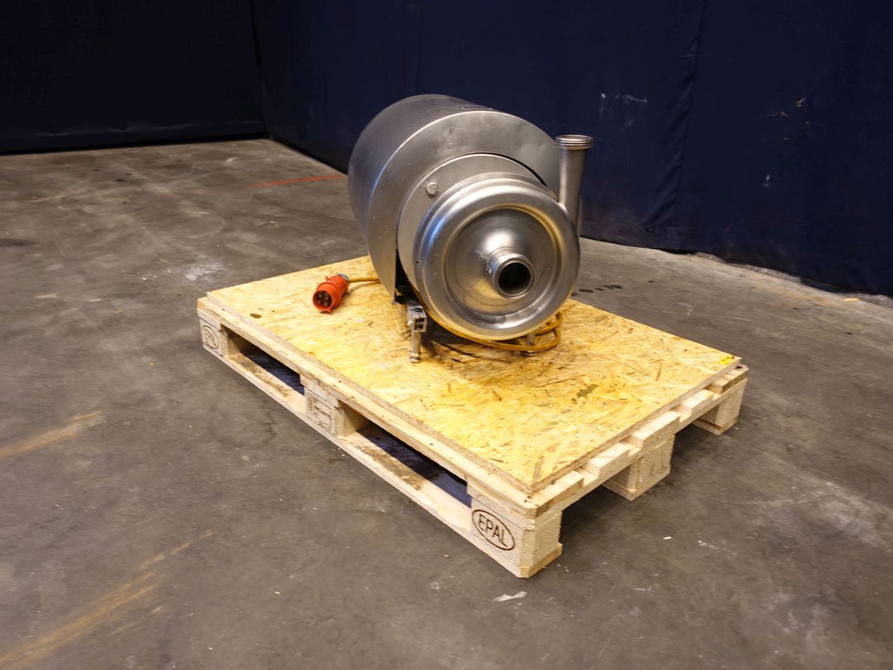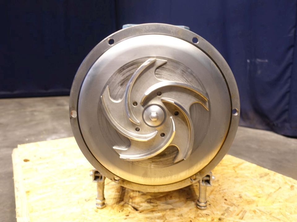 Sanitary centrifugal pump. Current motor: 11 kW - 21 A - 2950 rpm. Impellor diameter: 195 mm. Connections:2,5'' / 2'', SMS.