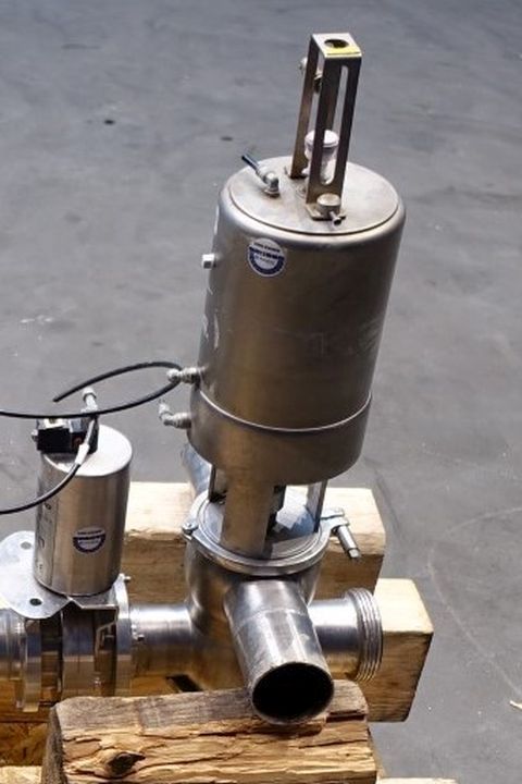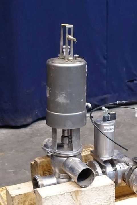Mixproof valve with seat lift. 4-Way. Butterfly stop valve between flanges. Pneumatic activated. Diameter: 3" Weld-Weld / 3'' Weld-SMS. Single position sensors.