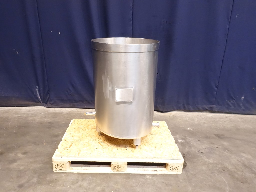 Leveltank with filter sieve inside. Total open top. Flat to the side. Sieve plate in the tank. Product outlet: 1,5'' DIN and outlet height: 15 cm. Connector for low level. 3 Adjustable feet. Inside dimensions of tank diameter 59 cm and height 85 cm. Total dimensions: 85 x 65 x 100 cm.