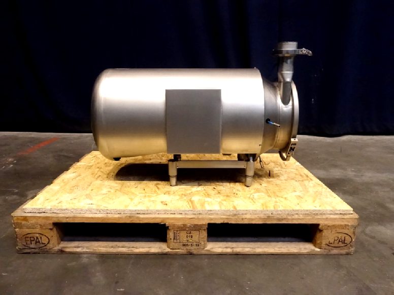 Sanitary centrifugal pump. Current motor: 15 kW - 28 A - 2925 rpm. Impellor missing, pump head missing. Flushed seal. Connections: 3'' / DN50, Clamp.