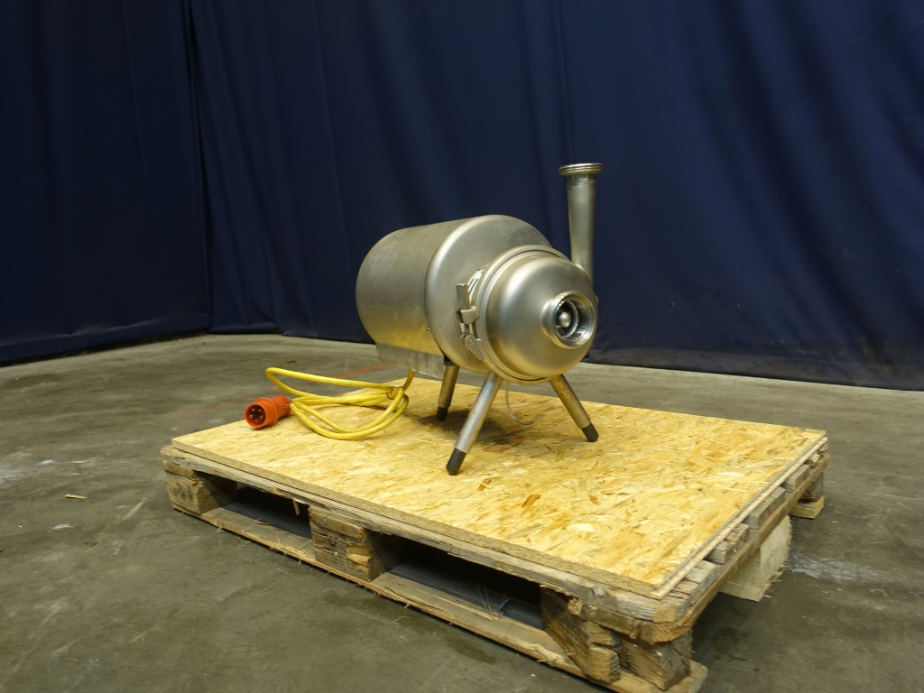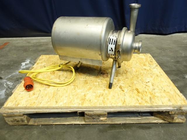 Sanitary centrifugal pump. Current motor: 3 kW - 10,7 A - 3510 rpm - 250 V - 60 Hz. Impellor diameter: 145 mm. Connections: DN65 / DN50, DIN.