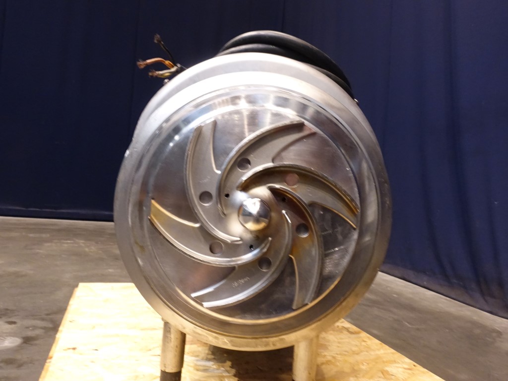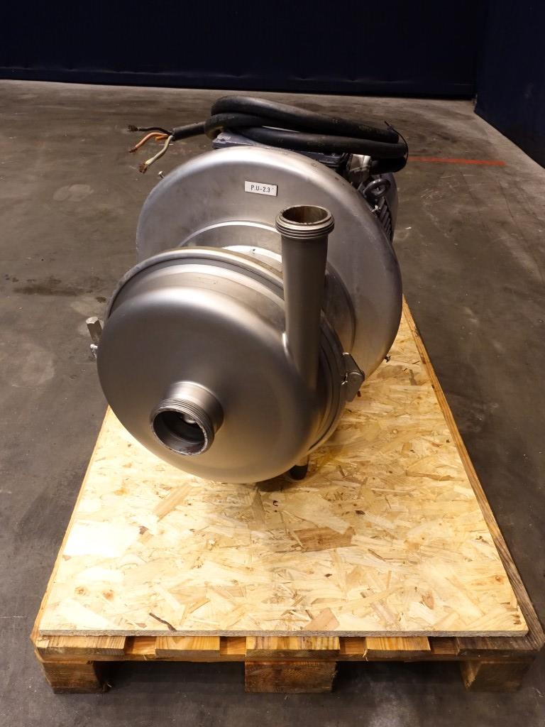 Sanitary centrifugal pump. Current motor: 22 kW - 39,5 A - 2955 rpm. Impellor diameter: 245 mm. Flushed seal. Connections: DN80 / DN65, SMS.
