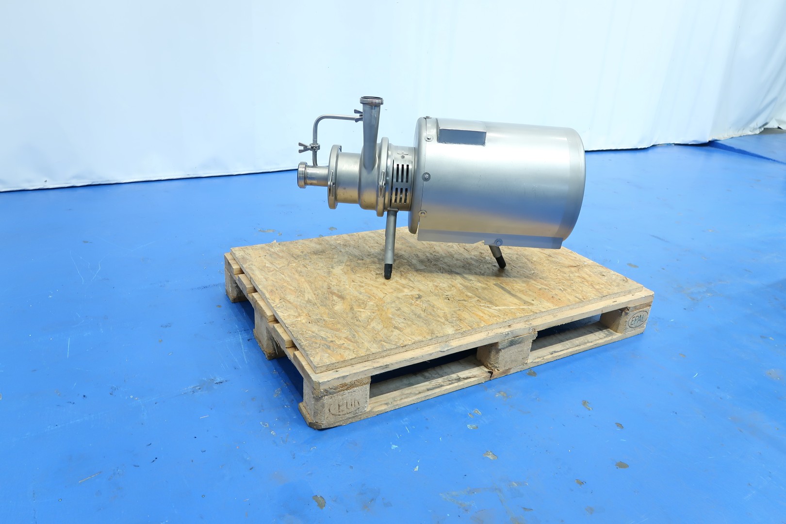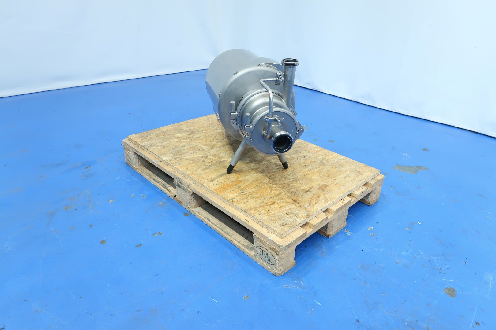Self priming pump - unique design. Already reconditioned. Ideal for CIP return. Impellor diameter: 125 and 175 mm. Motor: 5,5 kW - 10 A - 2.930 rpm - 50 Hz. Connections: (In) 2,5" SMS / (Out) 2" SMS. Max discharge pressure: 8 bar. Max operating temperature: 95°C. Dimensions: 85x36x53 (lxwxh) - weight: 97 kg.