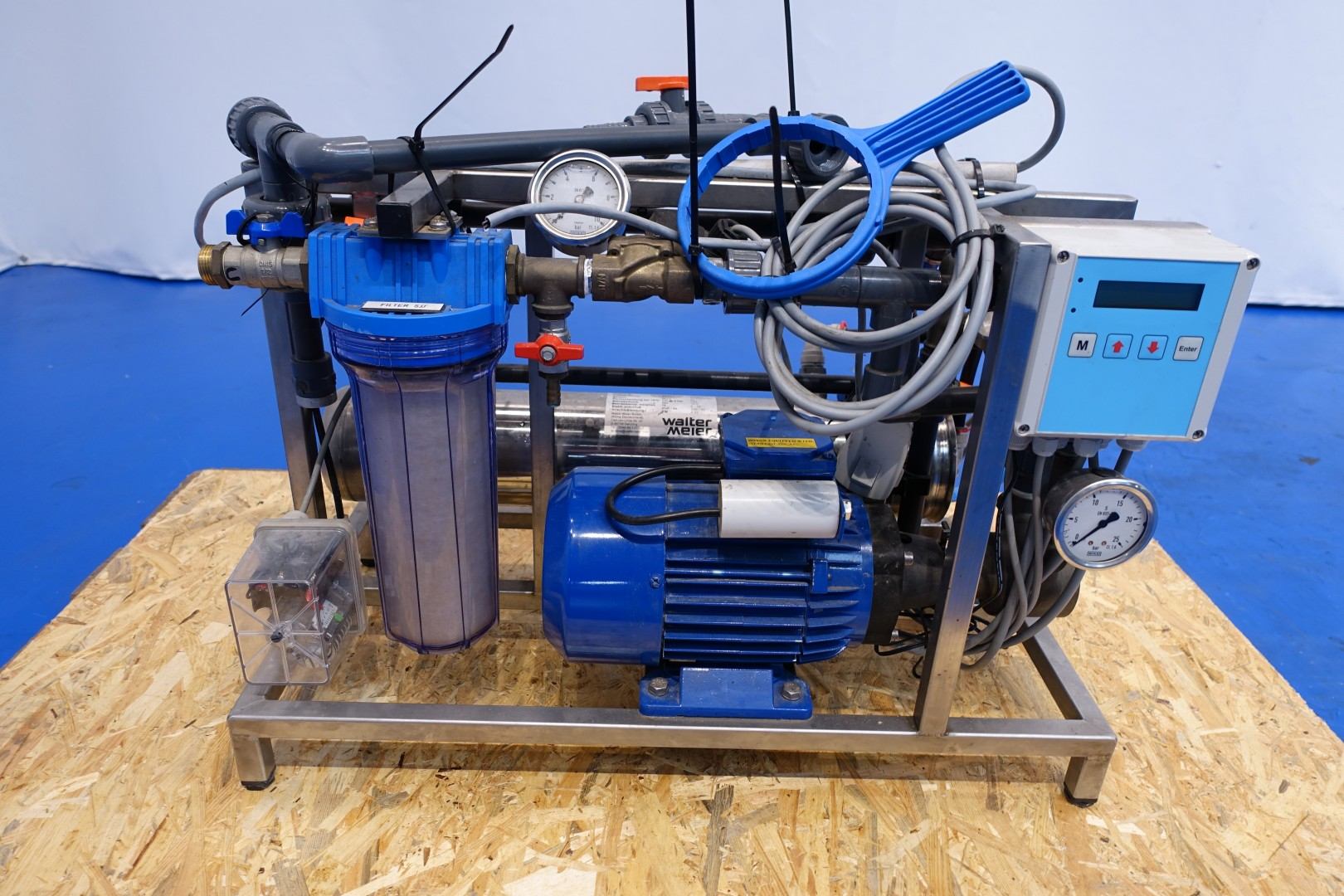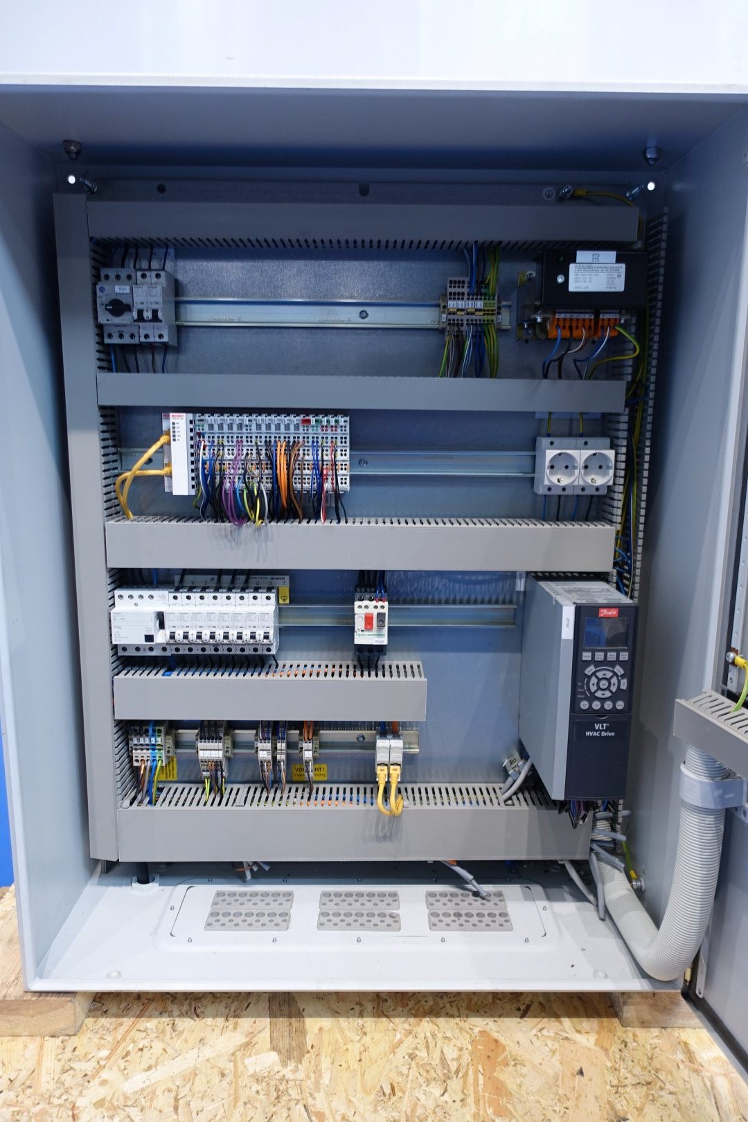 Cheese storage climatisation unit, to control air temperature and humidity in a cheese storage. Very compact design in stainless steel housing. Air treatment unit Blower, Filter, heating and cooling heatexchangers. Possible of water injection and water softening, by salt. Water circulation, pump-/RO filter system and controls. Box Dimensions: 110x110x280 (lxwxh) cm - total weight: 843 kg