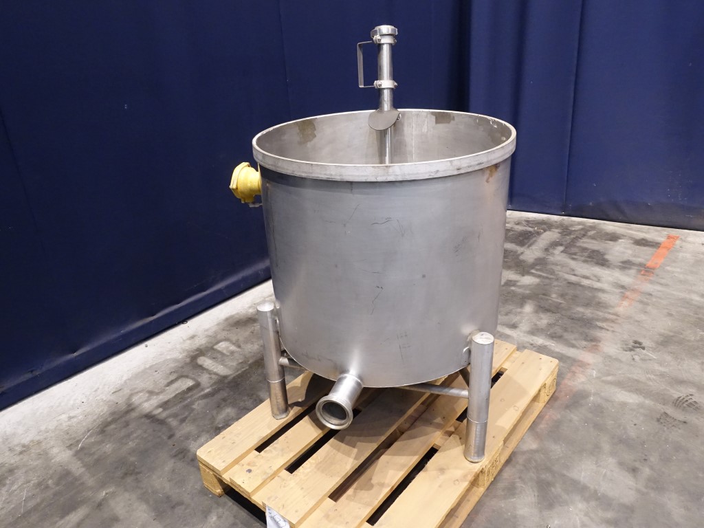 Balance tank. Open top with cover. Inner dimensions: diameter 74 cm, height 63 cm (250 L). Outlet connection: 3'', DIN, outlet height: 35 cm. Including level sensor/floater at 45 cm hegiht in tank. Inlet connection 2''. DIN. Total dimensions: 100 x 100 x 135 cm.
