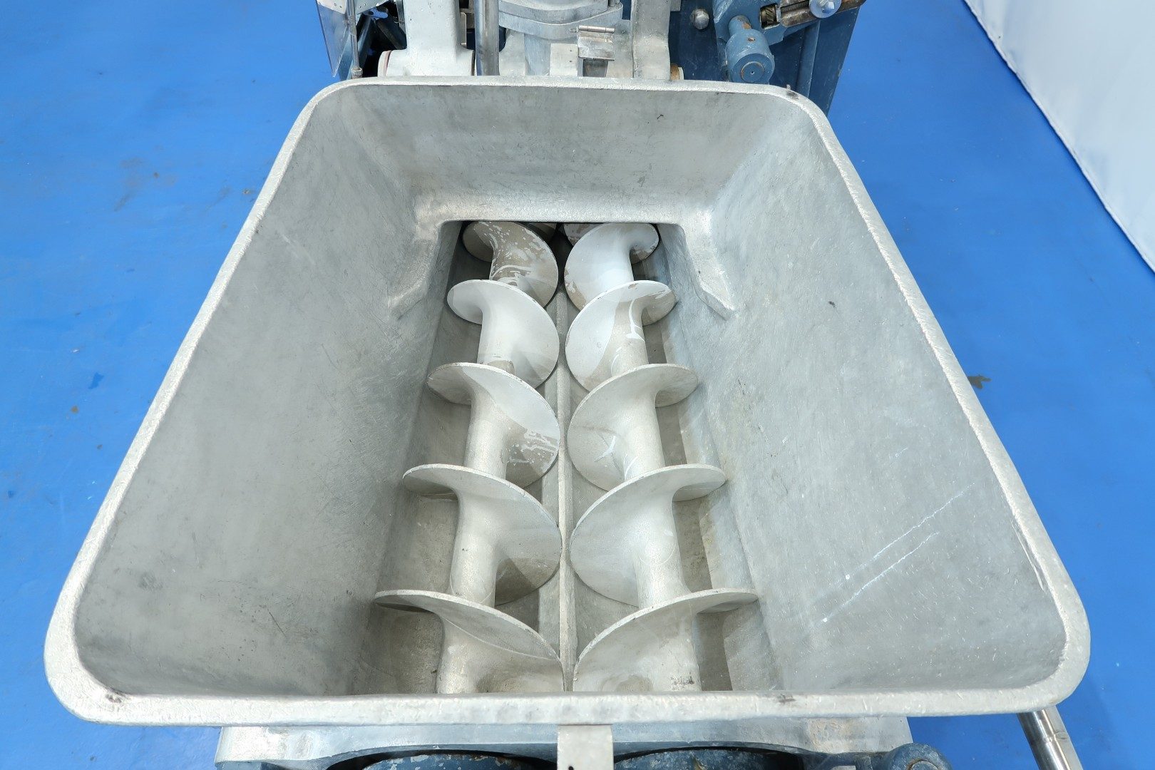 Full Automatic filling and wrapping machine for butter in aluminum foil or parchment paper. Product feed by trough and augers. Date coder by hot foil: Elmoprint M80V. Photo cell for print centring device (paper correction by spot mark). Outfeed conveyor of 130 cm lang and width 10 cm. Format on this machine: 227/250 gram, 95x63,5x40/44 mm. Manual button operation controls directly on machine. Main motor: 1,5 kW - 3,4 A - 50 Hz - 1.410 rpm. Dimensions: 285x100x210 (lxwxh) cm - weight: 1.032 kg.