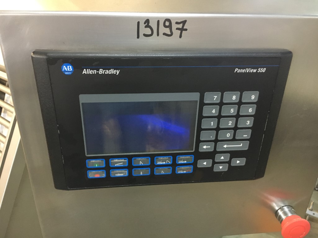 Peddle mixer with 2 axles. Horizontal. Single jacketed. Manual cleanable. Outlet slide, pneumatic controlled. Framework cover. Cover manual tiltable. 2x independent motors: 7,5 kW - 400 V - 15,5 A - 50 Hz - 965/1450 rpm. Reduction box: i = 40. N2: 24/36 rpm. Dimensions product room: 80 x 90 x 60 cm. Control panel with PLC and Allen-Bradley PanelView 550 operation panel. Total outside dimensions 190 x 180 x 160 cm.