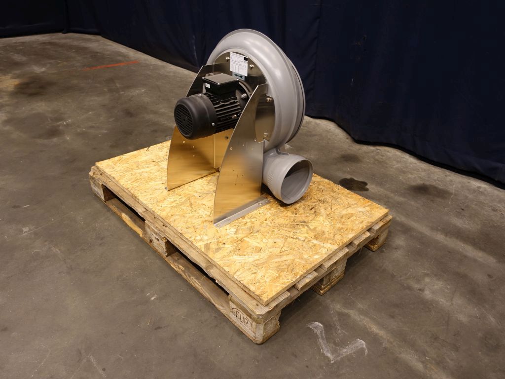 New blower. Max 500 m3/hour. Pressure 215 Pa. Speed fan 1407 rpm. Motor power: 0,55 kW - 1,5 A - 1.400 rpm. Temperature max: 80 °C. House and fan: PPs. Connections diameter 200 mm. 2 Reducers to diameter 180 mm. Complete with flexible connection cuff, diameter 200 mm. Total dimensions: 60 x 48 x 68 cm.