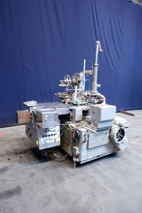 Incomplete 2 head rotary mini butter portion packer for rectangular hotel portions, packaging format 10 gram: 41,5 x 25,5 x 10 mm. Including integrated packer. Packing scheme of the packer: 10 gram, 125 portions, 1,25 kg per carton, 5 layers high. (5x5x5). Direct connection for butter feeding. No photo cell detection (continuous printed foil used). List with missing parts can be sent on request.