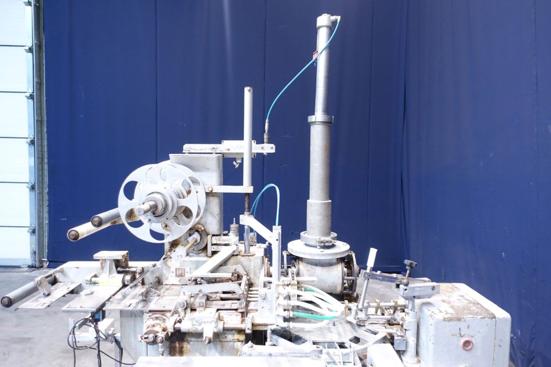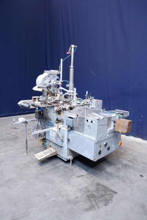 Incomplete 2 head rotary mini butter portion packer for rectangular hotel portions, packaging format 10 gram: 41,5 x 25,5 x 10 mm. Including integrated packer. Packing scheme of the packer: 10 gram, 125 portions, 1,25 kg per carton, 5 layers high. (5x5x5). Direct connection for butter feeding. No photo cell detection (continuous printed foil used). List with missing parts can be sent on request.