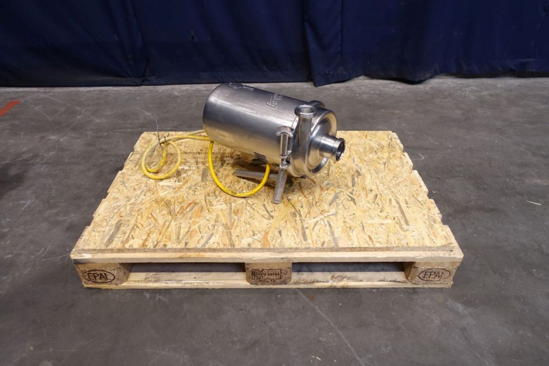 Sanitary centrifugal pump. Current motor: 1,5 kW - 5,9 A - 2840 rpm. Impellor diameter: 150 mm. Connections: 2'' / 1,5'', DIN.
