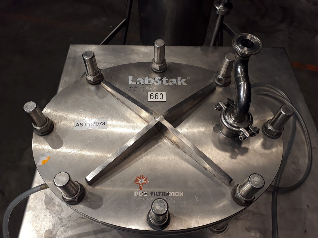Pilot plate and frame (PF) membrane filter system. 1'' tubes. Complete with balance tank of 25 liter. Mobile mounted. Total dimensions: 80 x 120 x 130 cm.