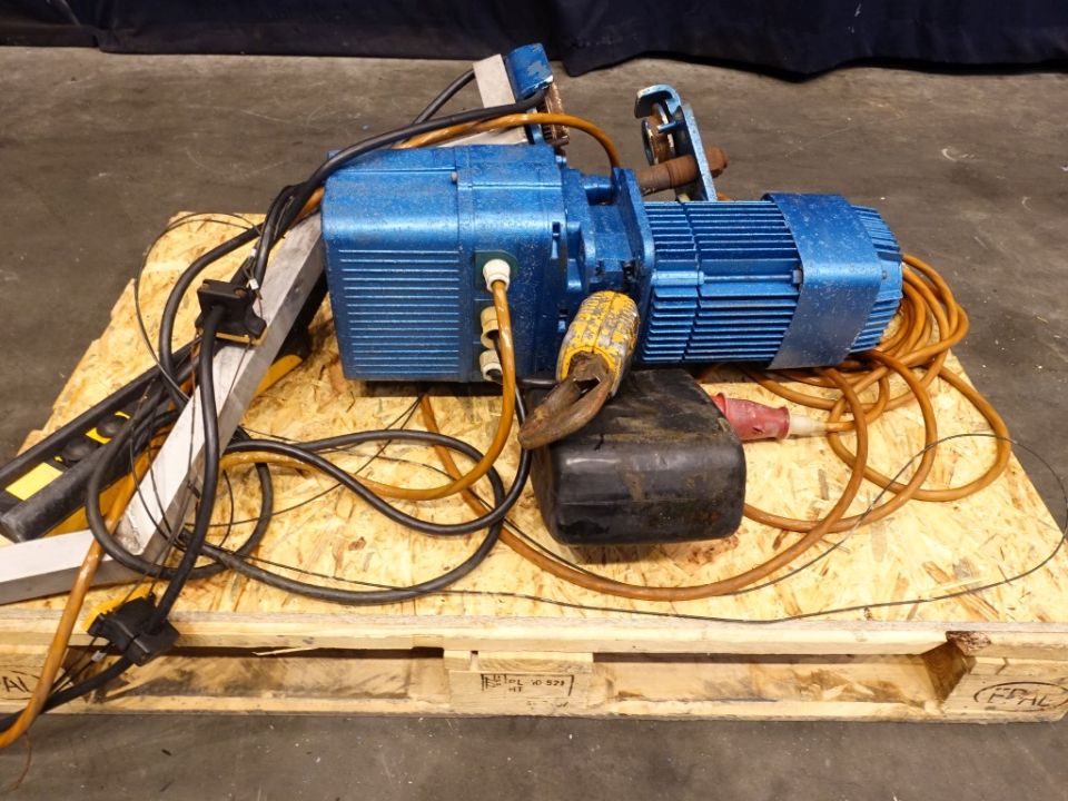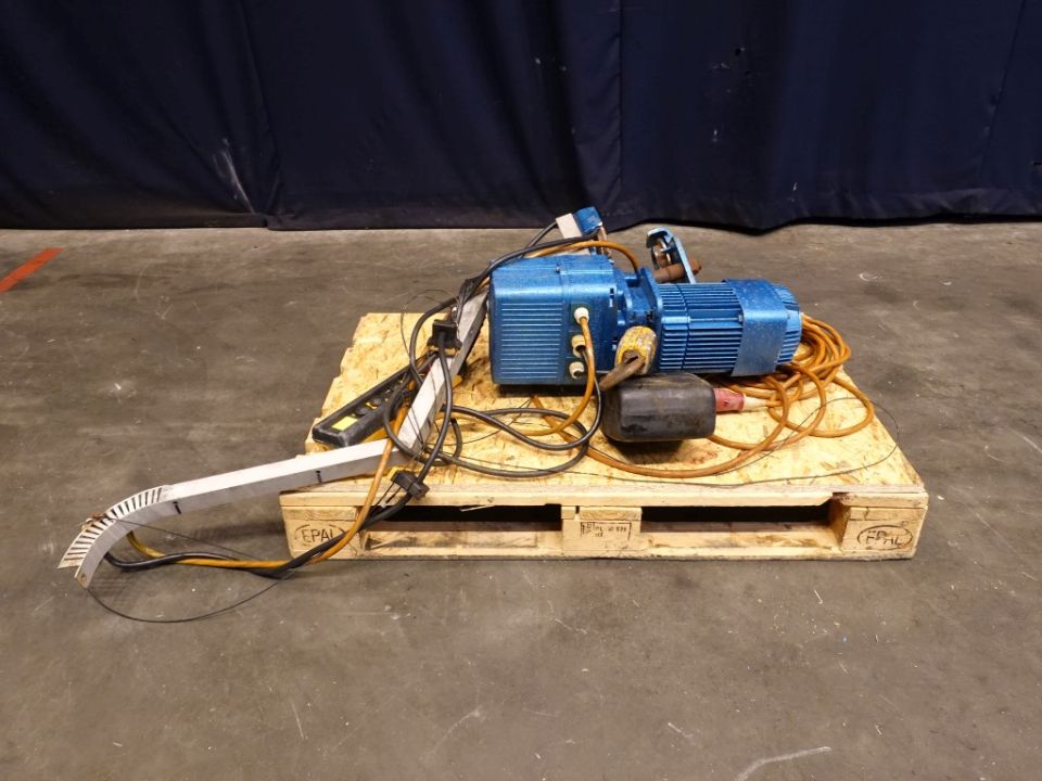 Crane previous used for lifting out the bowl of a separator. Max lifiting capacity 2.000 kg. Including push trolley. Motor power: 0,42 kW - 2,5 A - 2800 rpm.