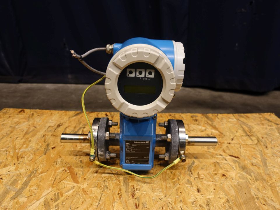 Magnetic flow transmitter. Connections: DN25, flange. Electronic display. Endress + Hauser Promag 50.
