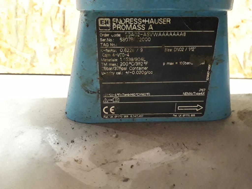 Mass Flow Measuring System (transmitter and sensor) for measuring the mass and volume flow of fluids having widely different characteristics such as condensed milk, oils and fats, acids, chocolate, syrups etc. Connections: DN02, DIN. Electronic display. DN02 / 1/12" Cajon 4-VCO-4, p max = 160 bar. TM max: 200 °C. 25 bar Container. Materials: 1.4539/904L. IP67.