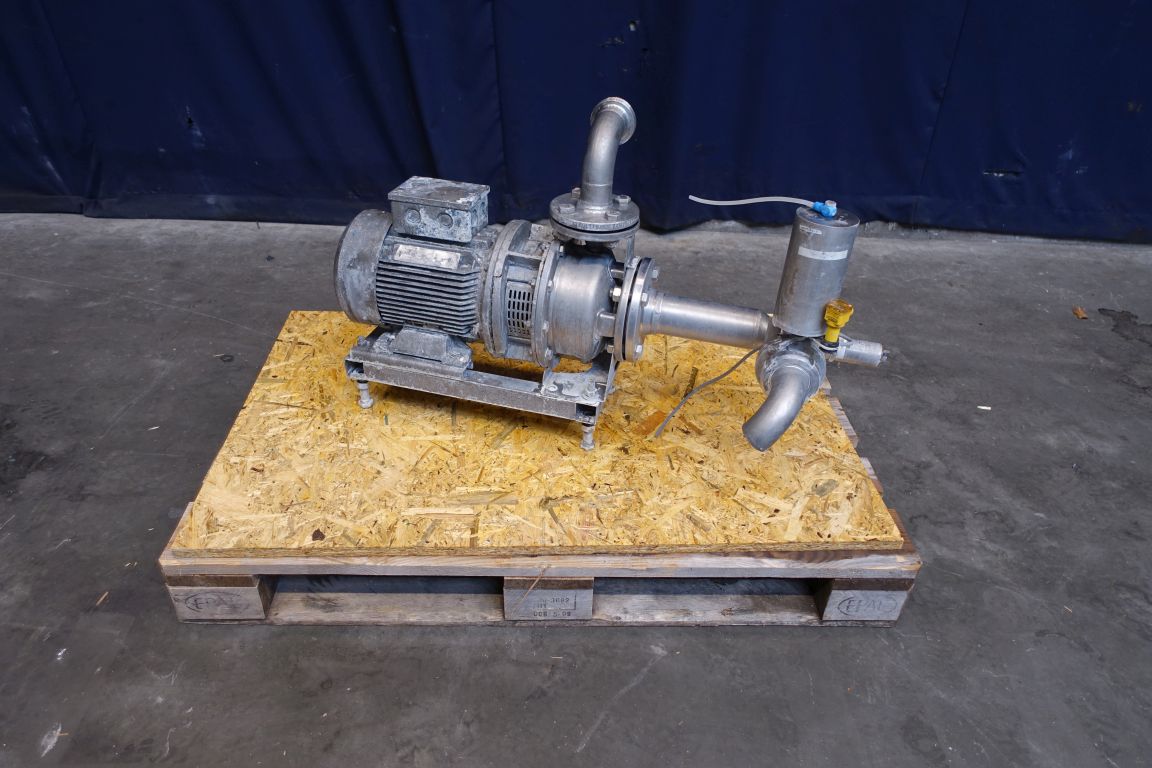 Non sanitary centrifugal pump. Current motor: 4 kW - 7,9 A - 2820 rpm. Connections: 2'' / 2'', DIN. Performance chart: 12 m3/h - 37,7 mWC / 42 m3/h - 25,0 mWC.