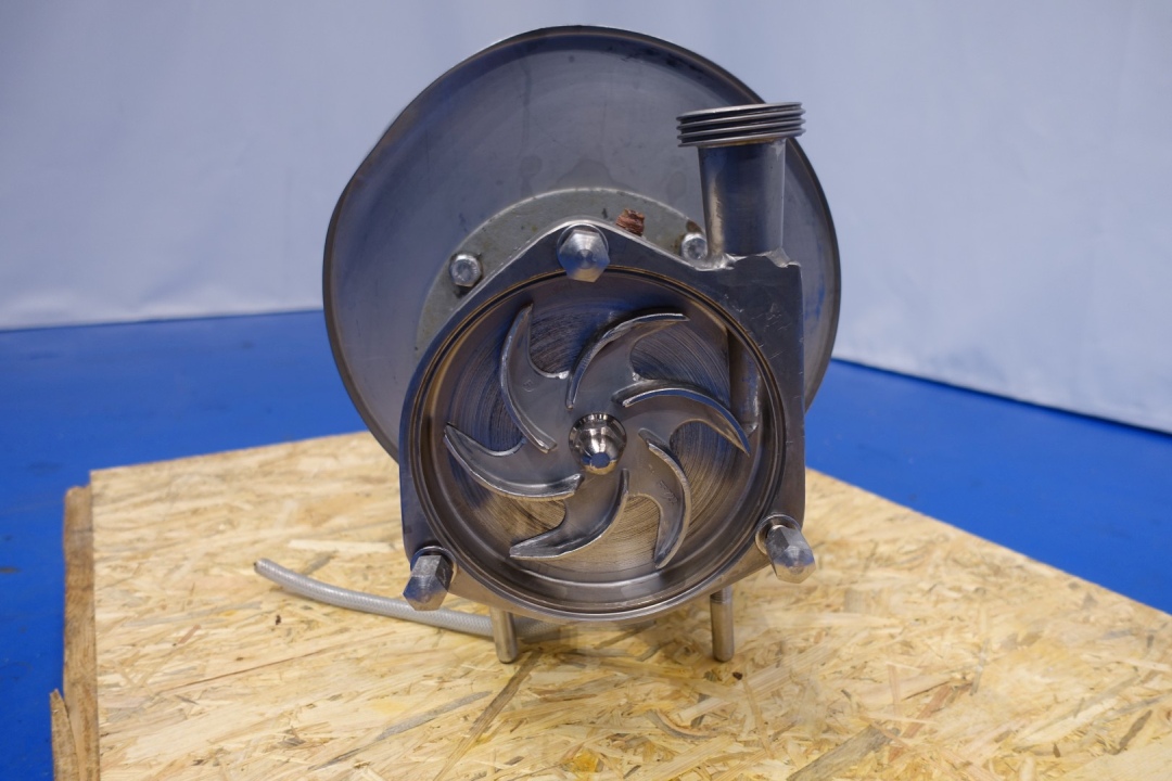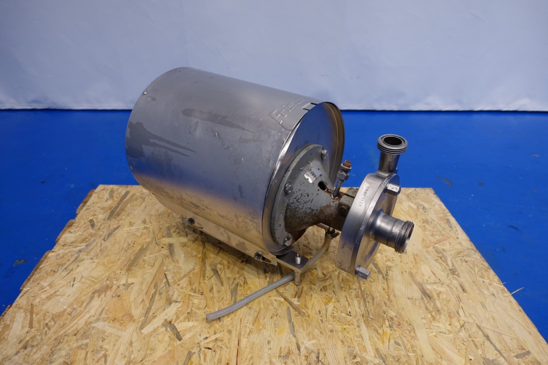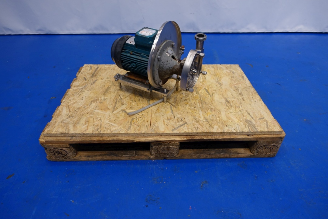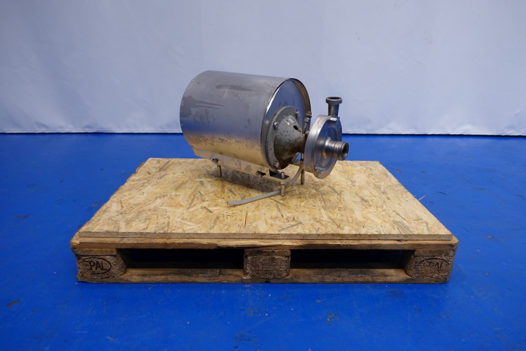Sanitary centrifugal pump. Current motor: 3,0 kW - 5,7 A - 2.890 rpm - 230-400 V - 50 Hz. Impellor diameter: 160 mm. Connections: (in) 2,5" SMS / (out) 1,5" SMS. Total dimensions: 65x35x44 (lxwxh) cm - weight: 82 kg.