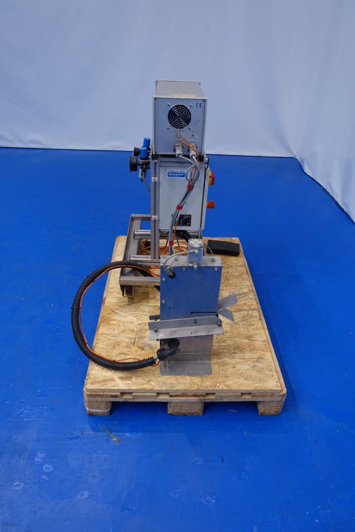 Semi-automatic ultrasonic net packaging machine. The semi-automatic net sealer is developed as a tabletop machine. It is suitable for infrequent packaging in pure net packaging without metal clip. With foot pedal for easy operation. Total dimensions: 88x42x93 (lxwxh) cm - weight: 80 kg.