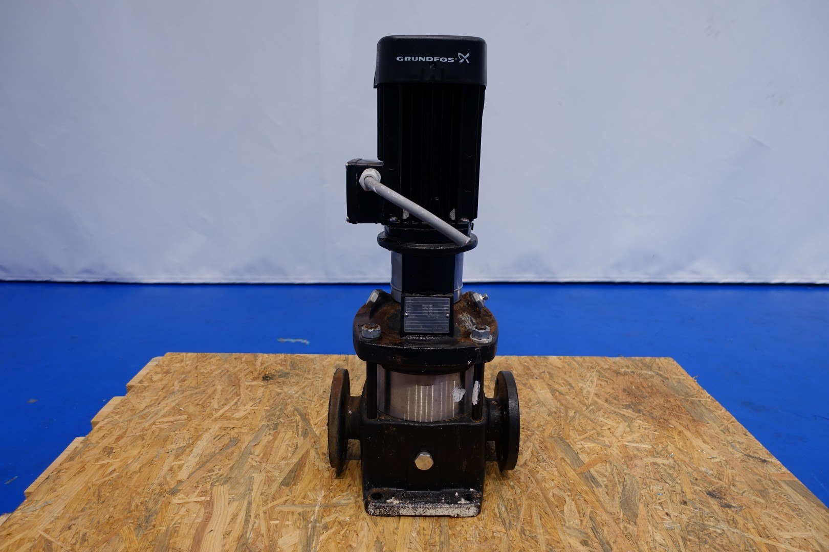 Grundfoss water pump. Non sanitairy. Serial number motor: DE6204.27.C3. Connections: (In) 2,5" Flange / (Out) 2,5" Flange. Total dimensions: 28x24x63 (lxwxh) cm - weight: 70 kg.