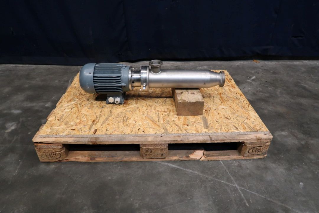 Dynamic In-line Mixer RM is the variable tube mixing system for a wide range of mixing processes, this one used for inline mixing of yoghurt/desserts and fruit. Can also be used for mixing fruit in ice cream and acids and aromas in jam and fruit gum. This Dynamic flow mixer has flushed seal, a volume: ± 2 liter. Maximum throughput depending on product. Connections: 2''/3'', DIN. Motor: 1,5 kW - 3,5 A - 1410 rpm.
