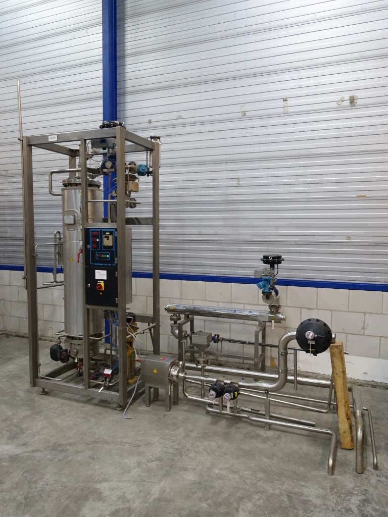 Sterile steam generator, skid mounted. With Tubular heatexchanger: Tube side: 8,5 bar / 0-180°C - 63 liter. Shell side: 8,5 bar / 0-180°C - 73 liter, including valves, control unit, piping. To make sterile steam out of normal steam by an heatexchanger / indirect system. The unit does not make steam. Capacity is estimated.