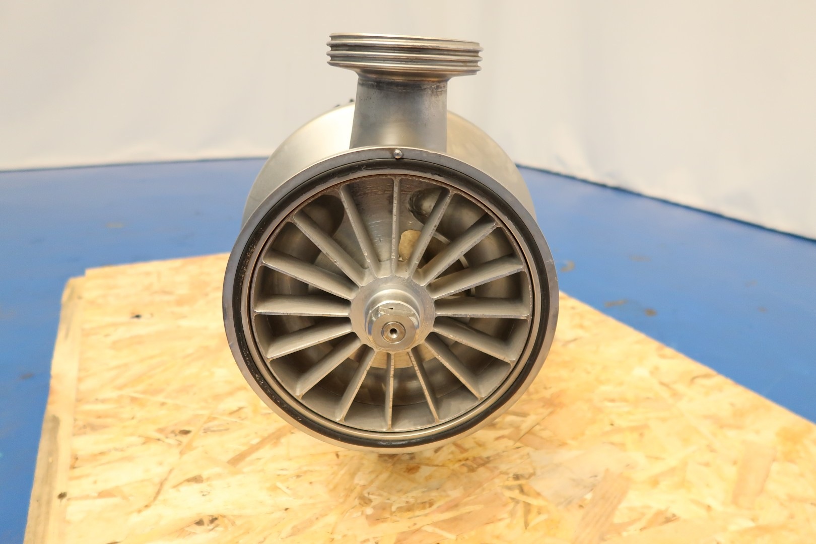Sanitary centrifugal pump, self suction. motor: 4,0 kW - 8,5 A - 1.430 rpm - 50 Hz. Impellor diameter: 200 mm. Pressure: 0,5 bar. Connections: (in) 3" Din / (out) 3" Din. Total dimensions: 70x26x39 (lxwxh) cm - weight: 116 kg.