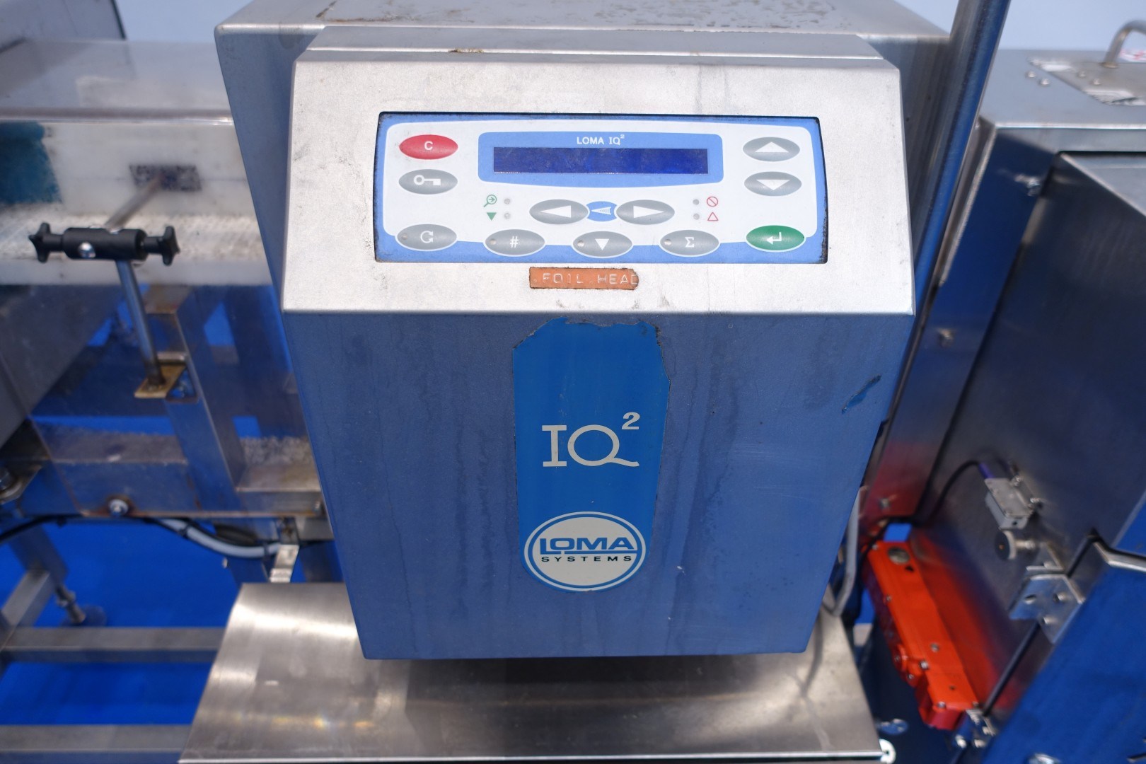 Metal detector, through put, size of product maximum: 15 x 8 (wxh) cm (aperture size 15x12,3 cm). Including conveyor; length 210 cm - width 10 cm, ejecting system by pneumatic arm with collecting tray. Total dimensions: 217x65x166 (lxwxh) cm - weight: 288 kg.