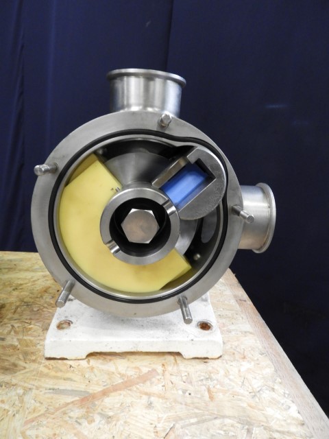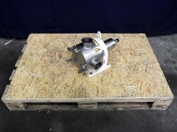 Sine shaped impellor. Flow per revolution: 0,224 ltr. Maximum particle size: 22 mm. Maximum speed: 800 rpm. Maximum capacity: 10.500 ltr/h. Shaft diameter: 25 mm. Shaft height: 146 mm. Connections: Tri-clamp 60 mm/60 mm. No current drivework or motor.