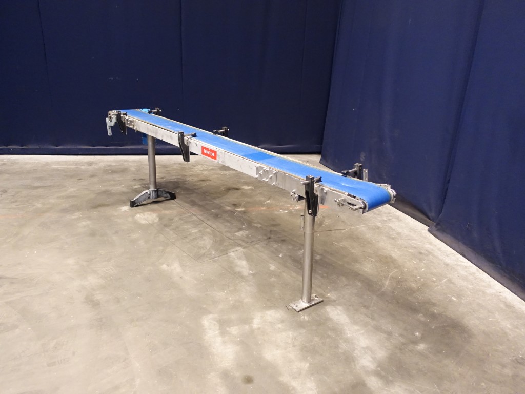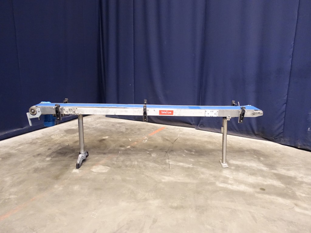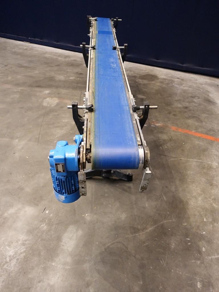 Belt conveyor. Effective Belt: 280 x 190 cm. Motor: 0,37 kW - 1,1 A -n1: 1360 rpm - i: 20 - n2: 68 rpm. Belt speed ± 21 mtr/minute. Horizontal. Total Dimensions: 250 x 50 x 85 cm.