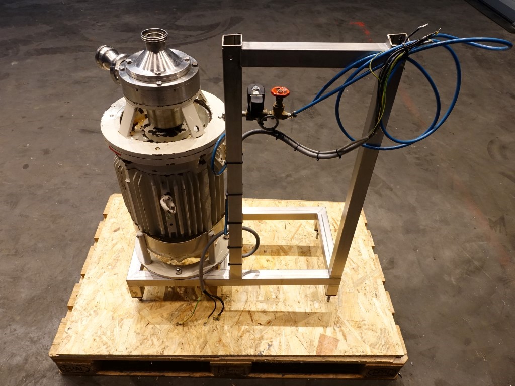 Emulgator/stretcher. Outside head diameter: 160 mm. Rotor diameter: 150 mm. Stator diameter: 125 mm. Spline 3 mm. Rotor speed: 2935 rpm. Motor: 10 kW - 19,2 A -2935 rpm. Connections: 1,5'', DIN.