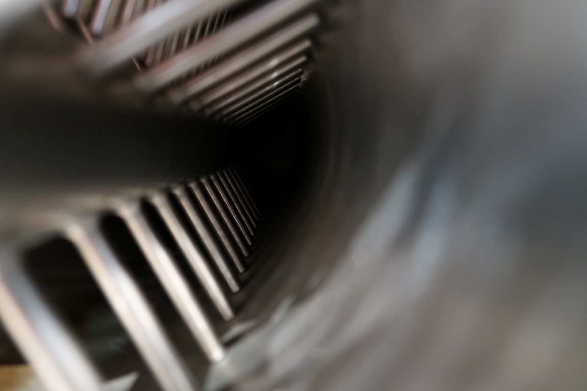 Pinmixer. 1 Cylinder. Diameter 150 mm. Length 600 mm. Rotor with 3x 20 pins. Motor power: 11,5 kW - n1: 720 rpm. Excluded controls and documentation. Total dimensions: 135 x 40 x 30 cm.