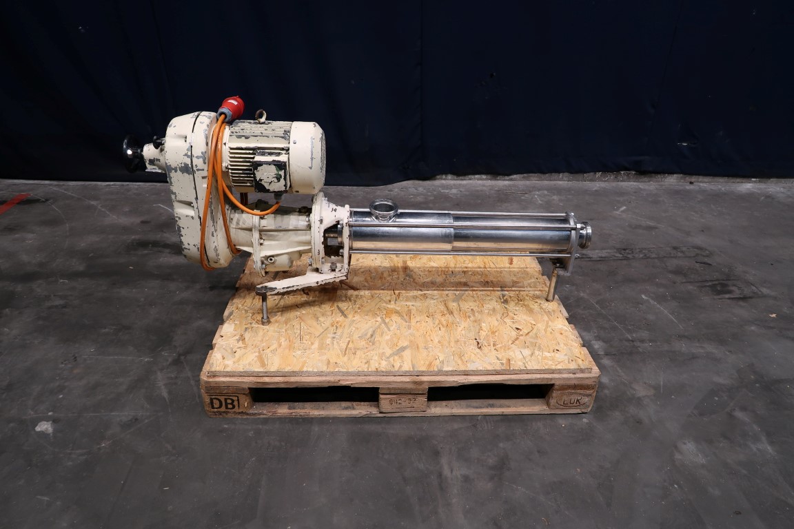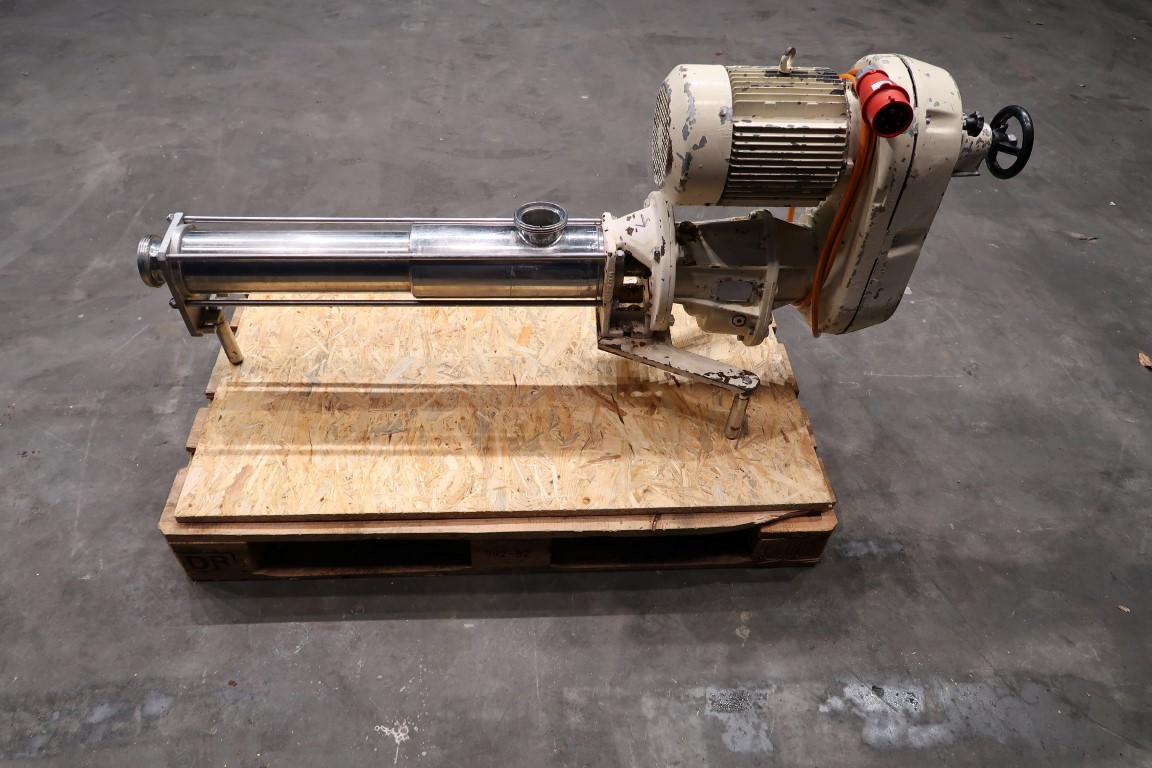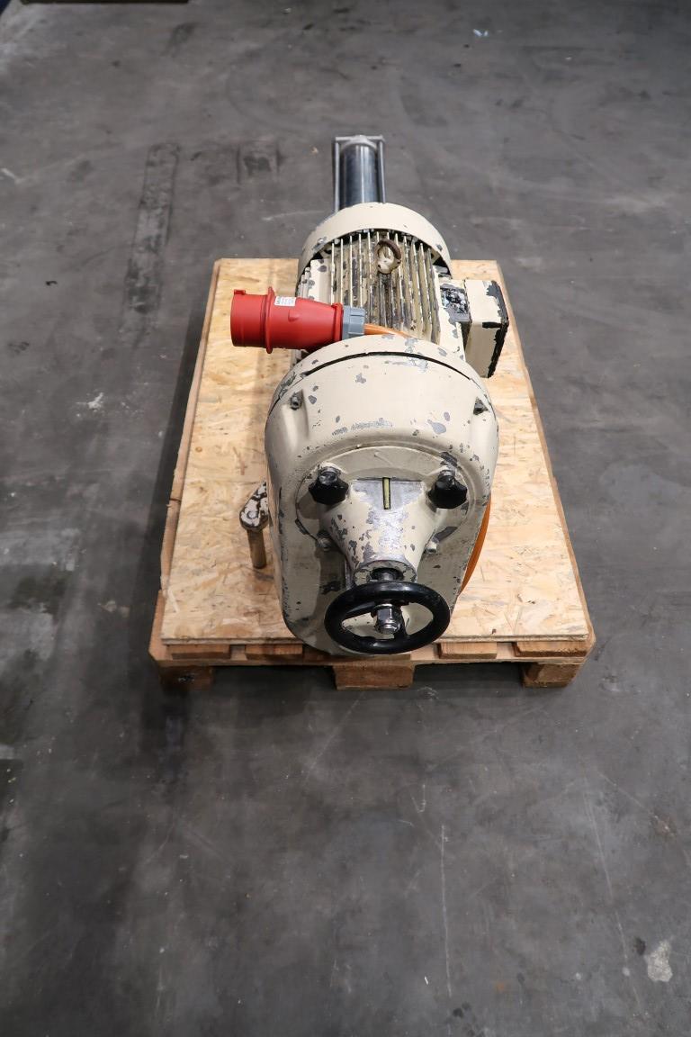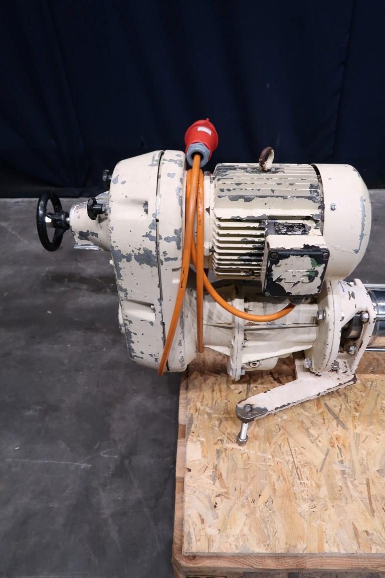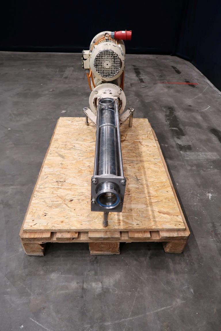 Screw / mono pump. Stator diameter 70 mm. Stator length 66 cm. Current motor: 4,0 kW - 8,7 A - n1 1140 rpm - n2 = 89-540 rpm. Steel frame mounted. Connections: 3''/3''.