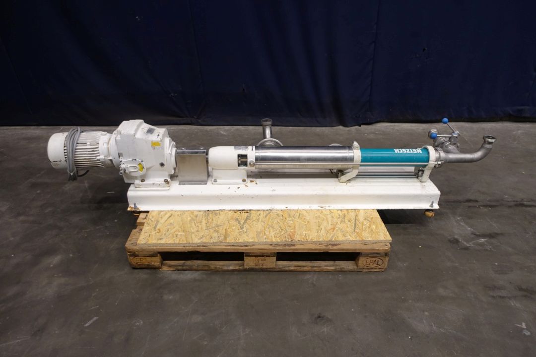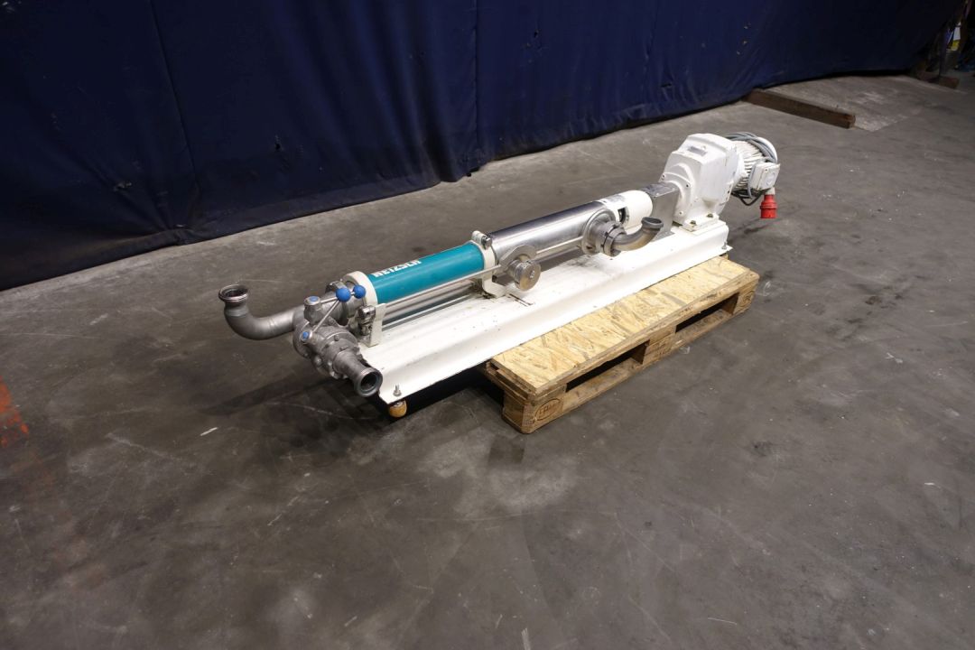 Screw pump. Stator diameter 40 mm. Stator length 450 mm. 5 Windings. Max pressure .. bar. Current motor: 2,2 kW - 5,1 A - n1 1.410 rpm - i = 66-122rpm n2 = pump speed by mechanical variable reductor. Manual by-pass valve. Frame mounted. Connections: (in) 2,5/2 '' Din / (out) 1,5'' Din. Total dimensions: 228 x 50 x 55 cm. With general documentation/folder.nr: 260474 Can be delivered with matching Cooker - Stephan (STN15237).