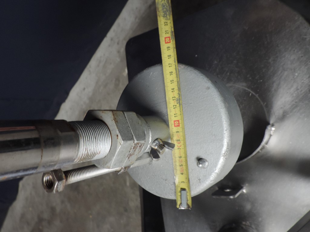 Stainless steel tabel with pneumatic cylinder for closing product by pressure. Diameter of the product ± 150 mm. Stroke 90 mm. Height adjustable. Total dimensions: 80 x 50 x 185 cm.
