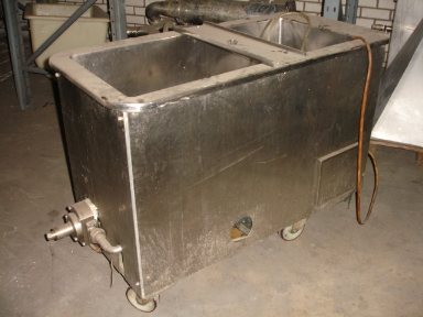 Open tank Open stainless steel tank with Jabso (type: 24000-4101) lobbe pump. Outside dimensions: 1,23x0,60x0,87 mtr.