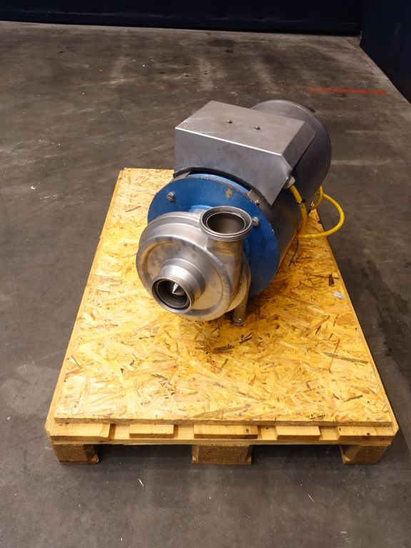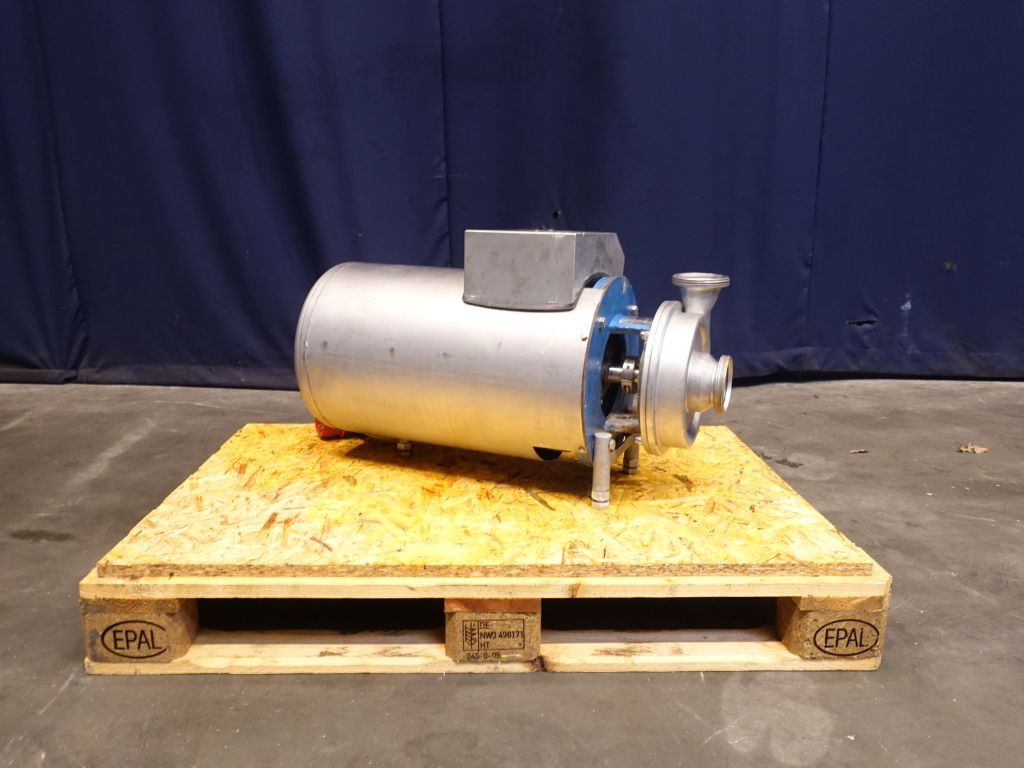 Sanitary centrifugal pump. Current motor: 11 kW -23 A - rpm. Impellor diameter: 180 mm. Pressure: 3,5 bar. Connections: 3'' / 3'', DIN.