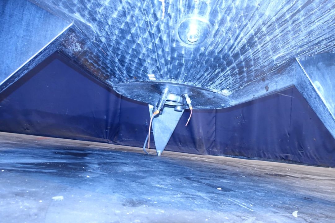 Double jacketed process tank. Top driven fenceagitator. Motor power: unknownInsulated side and bottom. Pressure in tank atmospherique. Conical. Connections for: PT-100 tempemperature sensor, pressure transmitter, high and low level. Breather. CIP spray bowl. Manhole in top. 3 Adjustable feet. Total dimensions: 1,80 x 1,80 x 2,40 mtr.