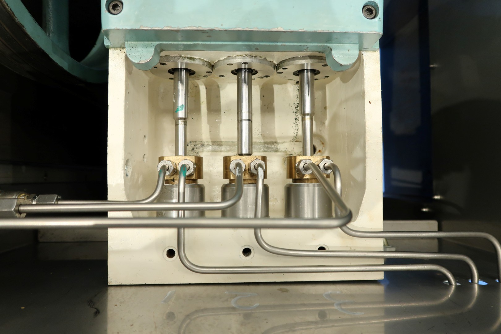 Pilot Homogenizer, laboratorium, 2 stage. Manual pressure control 1st and 2nd stage. Piston diameter 16 mm - stroke: 50 mm. With 2 pressure sensors, pressure indication via display. Motor: 4 kW - 8,2 A - 1.440 rpm. Operational contol panel with frequency convertor directly on frame. Speed manual adjustable via control panel and rpm indication via display 10-200ltr/h. pressure up to 375 bar. Documentation available. Total dimensions: 110x70x180 (lxwxh) cm - weight: 307 kg.