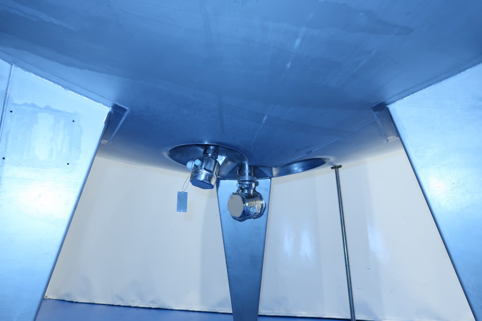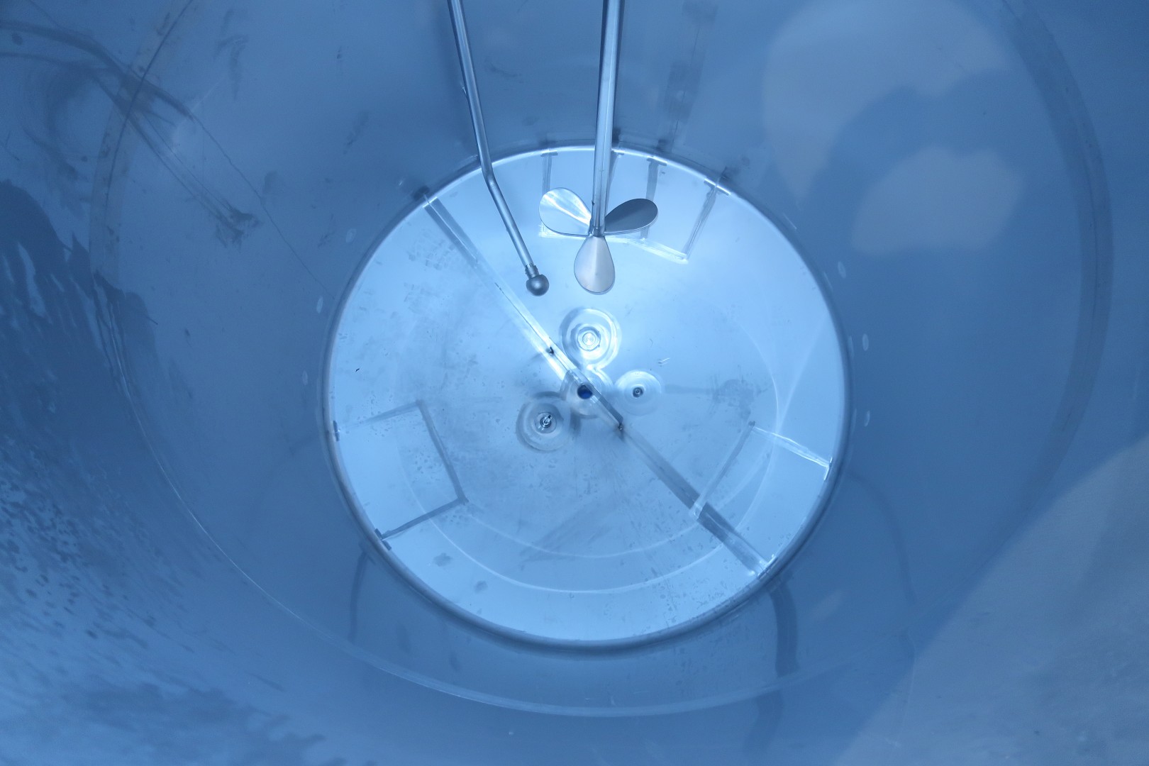 Insulated tank. 2 x Cip spray bowl (1 high and 1 low). With propellor agitator, motor 1,1 kW - 2,45 A - 313 rpm - 50 Hz. Max temperature: 85°C. With level sensor, high and low. With pressure sensor and connection for temperature sensor (currently not included) in bottom. On top: breather, lamp and sight glass. Manhole in top round diameter 42 cm. 3 Adjustable feet, cylindrical height: 183 cm. Outlet connection: 1,5" Din. Total dimensions: 170x160x350 (lxwxh) cm - weight: 630 kg.