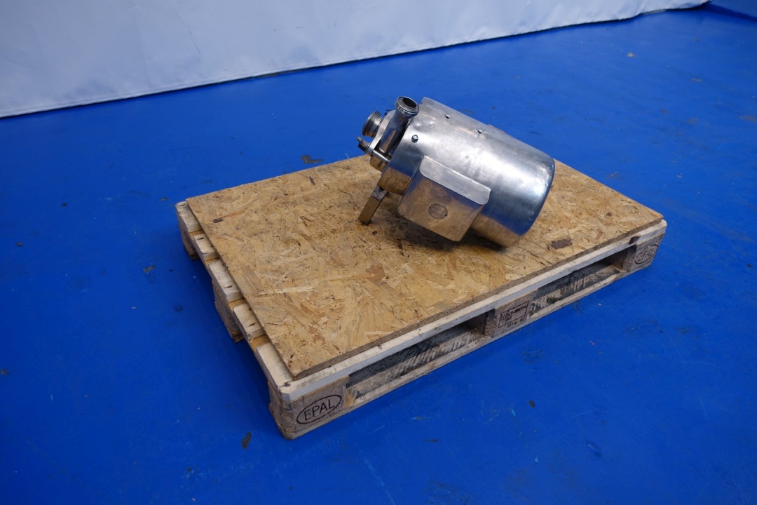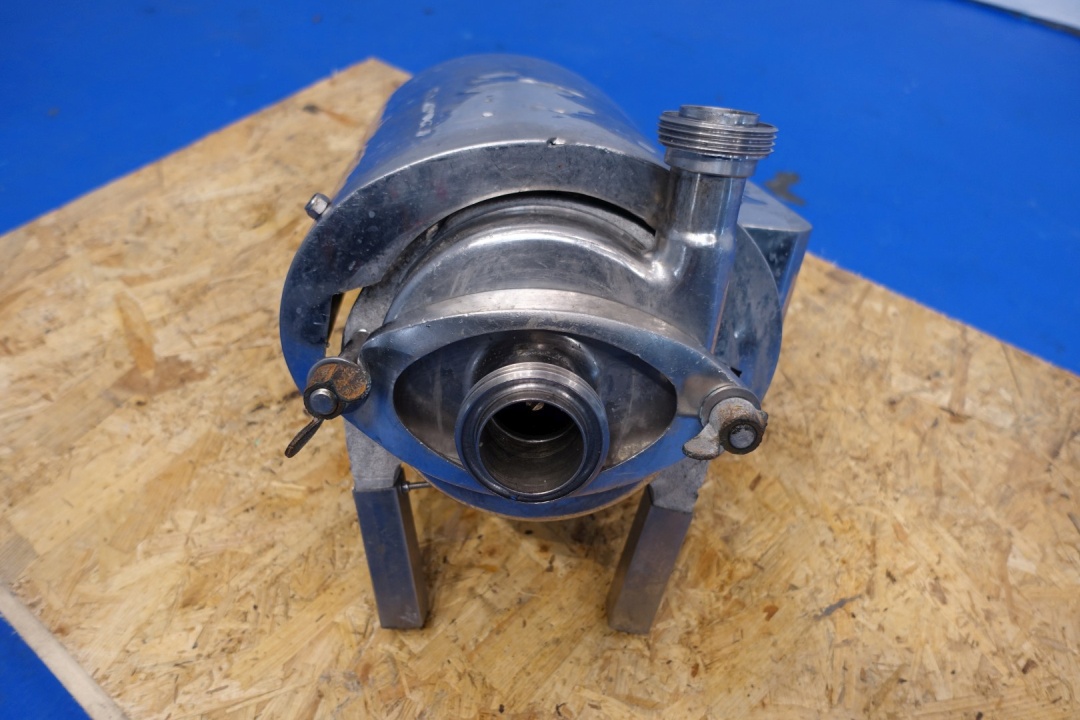Sanitary centrifugal pump. No typeshield on motor. Impellor diameter: 155 mm. Connections: (in) 2,5" SMS / (out) 1,5" SMS. Total dimensions: 47x39x32 (lxwxh) cm - weight: 59 kg.
