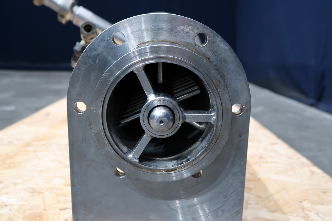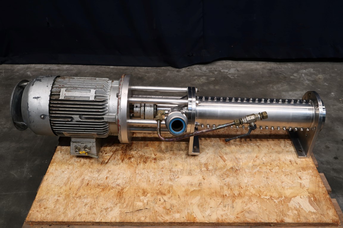 Pinmixer. Motor details unknown. Diameter tube: 115 mm. Lenght tube: 590 mm. 3x 20 pins on the cylinder and 22 pins on the rotor. Total dimensions: 130 x 50 x 40 cm.