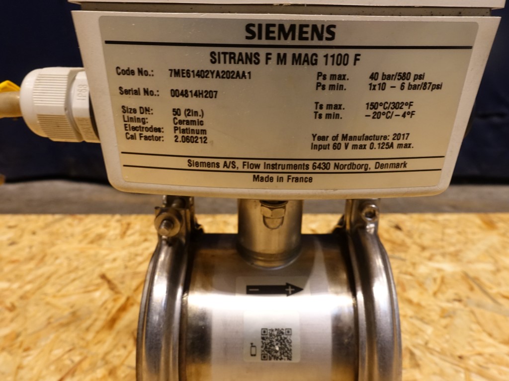 Magnetic flow transmitter. Connections: DN50. Electronic head/display, Siemens Sitrans F M MAG 6000.