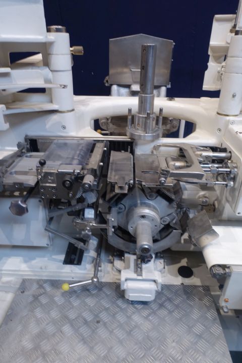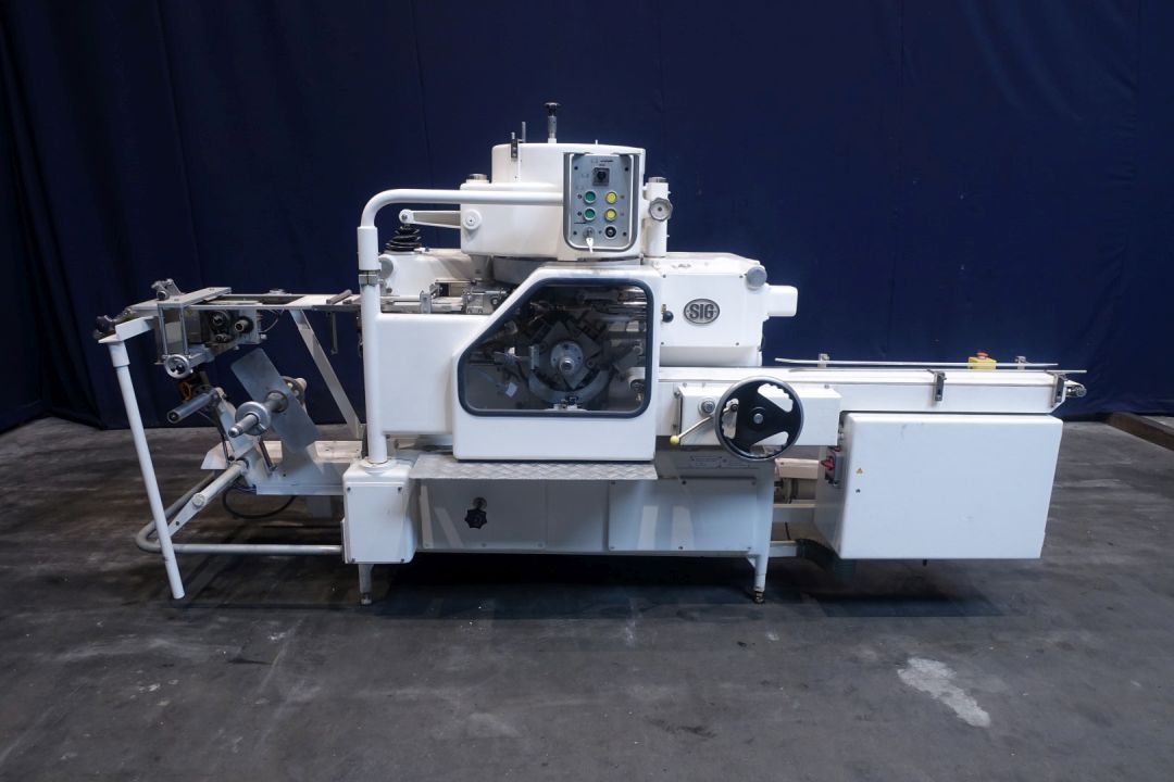 Fully automatic filling and wrapping machine for butter in aluminium foil or parchment paper. Product feed by through with augers (including lid). Photo cell for print centring device (paper correction by spot mark). Date coder (Metronic hotfoil printer). Outfeed conveyor of 150 cm. Format set on this machine: 250 gram, ± 100 x 75 x 35 mm. Mechanical rebuild (not by LDFE), Control panel with simple original controls (no PLC). Total dimensions: 335 x 230 x 180 cm.