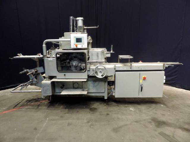 Full automatic filling and wrapping machine for margarine in aluminum foil or parchment paper. Product feed by direct link up with compensator (CIP), butterfly valve, bend and pressure relief valve. Photo cell for print centering device. Outfeed conveyor. Format set 500 gram, rectangular, 140 x 80 x 50 mm. Control panel with PLC control (Siemens S7) and Siemens OP. Instruction manual available. Reconditioned in 2010 by Lekkerkerker Dairy & Food Equipment. Has been running together with Norreg packer (STN12961) Outside dimensions: 4 x 2,1 x 2,3 mtr. Weigth: 2750 kg.