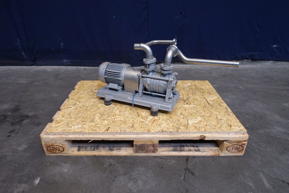 Reconditioned vacuum liquid ring pump. Compression pressure: 0,2 - 0,8 Bar. Motor 1,1 kW - 2,6 A - 2880 rpm.