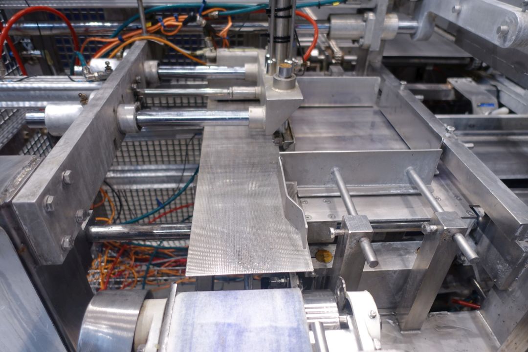 Fully automatic packer, for American folding boxes. Used for 200gr bricks of foil 90 x 53 x 44 mm packed and wrapped. Current dimensions of the box: 375 x 290 x 135 mm. 5 x 4 packs x 3 layers = 60 packs. Including hotmelt Valco Melton model: NC4 (1 tube). Modicon controls. Has been running together with SIG FD140 foil packing and wrapping machine for margarine (STN15313). Machine dimensions: 290 x 230 x 235 cm. Weigth ca. 1.200 kg's.