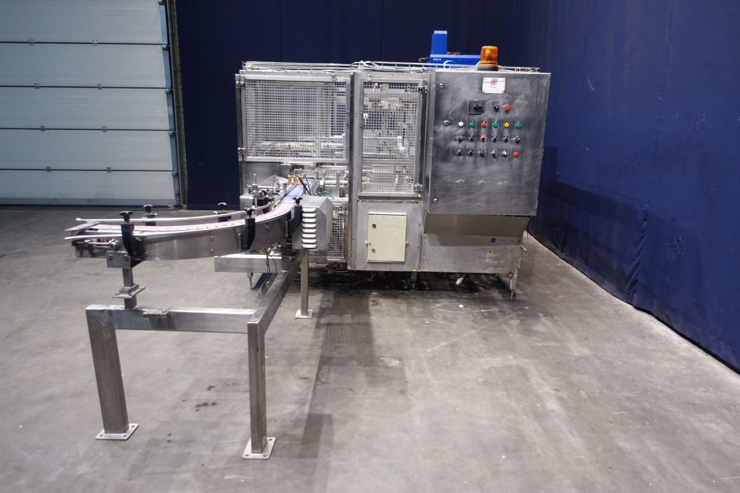 Fully automatic packer, for American folding boxes. Used for 200gr bricks of foil 90 x 53 x 44 mm packed and wrapped. Current dimensions of the box: 375 x 290 x 135 mm. 5 x 4 packs x 3 layers = 60 packs. Including hotmelt Valco Melton model: NC4 (1 tube). Modicon controls. Has been running together with SIG FD140 foil packing and wrapping machine for margarine (STN15312). Machine dimensions: 270 x 230 x 240 cm. Weigth ca. 1.200 kg's. Some electrical documentation available.